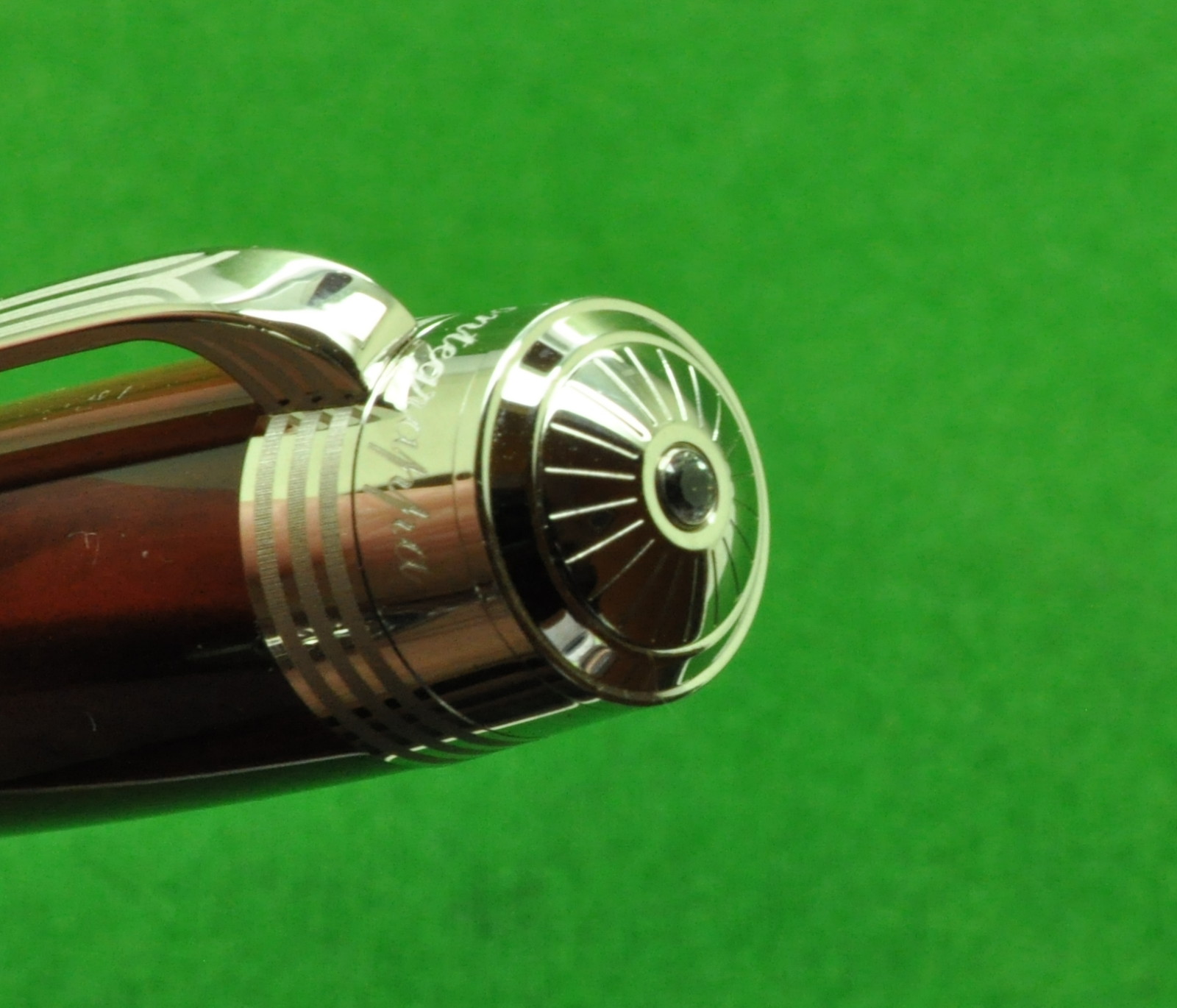 Limited edition Antonio Stradivari limited edition fountain pen in Precious Resin with Chrome Trim. Precious Stone Set in Cap Top. Number 1797 of only 2000 Made. In Absolute Mint Unused Condition in Original Box with Booklet and Outer Packaging. Never Inked. Piston fill. Fitted with the original, Twin Tone 18kt gold medium tipped nib.