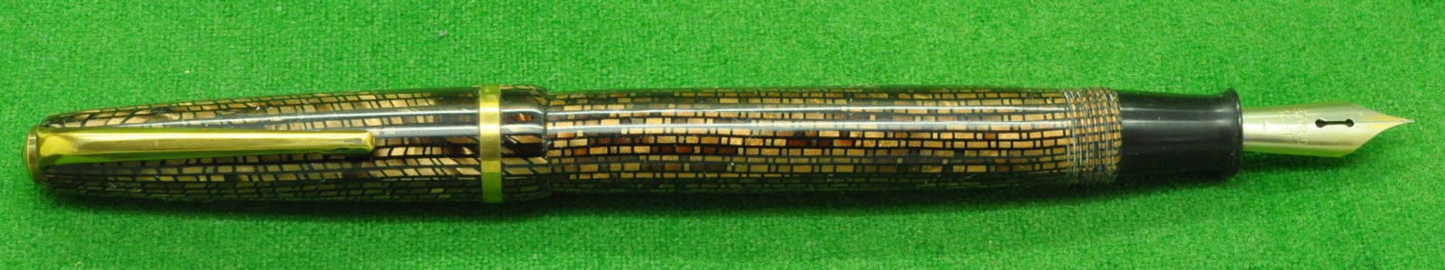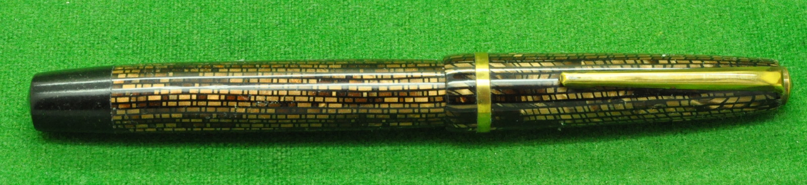 Unbranded USA fountain Pen in Parker Golden Web Pattern with gold filled Trim. In Mint Condition. Button Fill. Fitted with the original, Semi Flex medium tipped nib