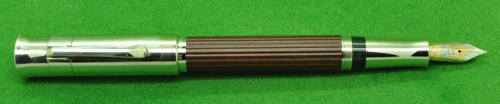 Magnificent Graf von Faber-Castell First Pen of the Year 2003 in Snakewood and Platinum Fill. In Mint condition. Piston fill. Fitted with the original twin tone 18kt gold medium tipped nib. Exceptional, Very Large, heavy high quality pen.