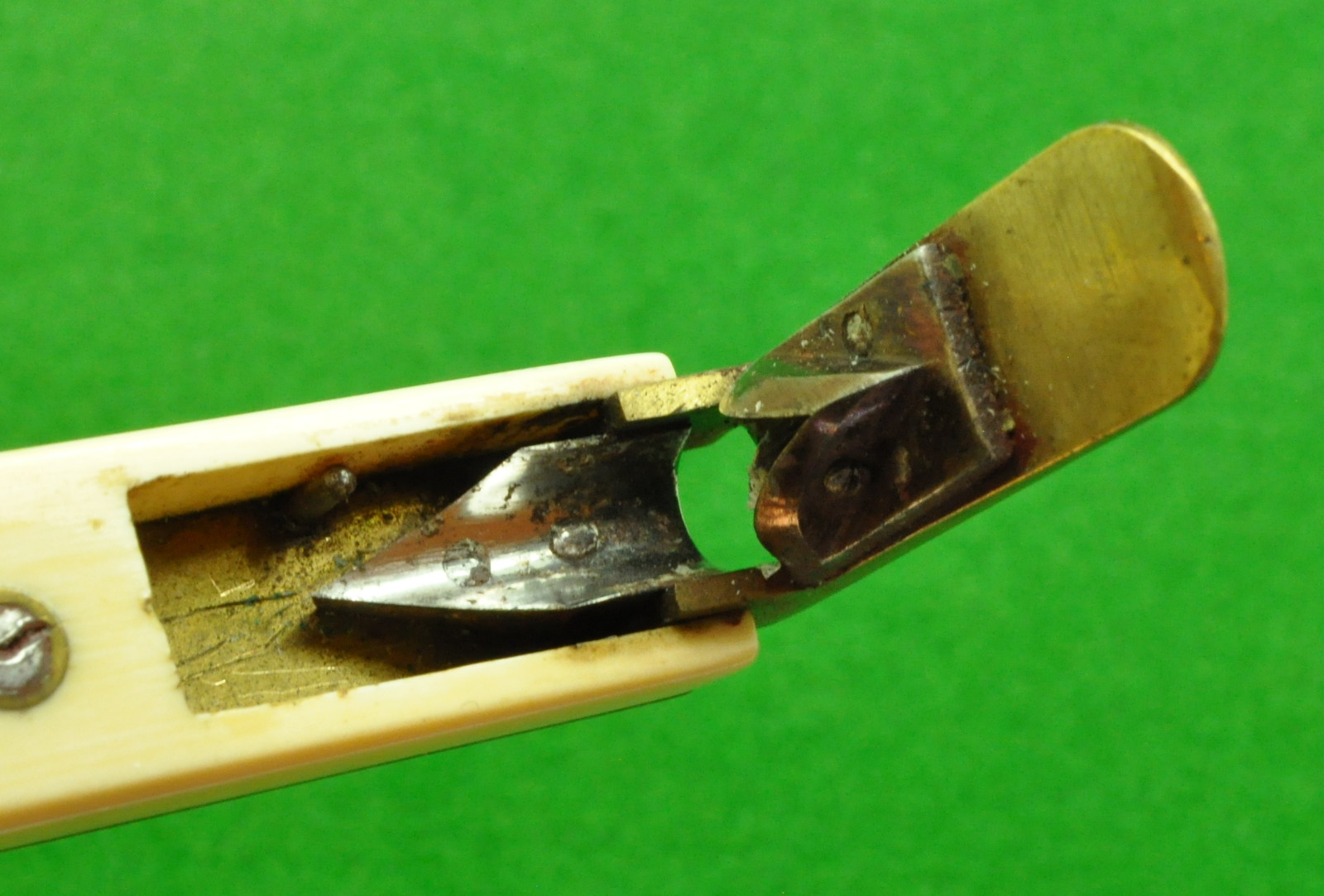 Early Quill Cutter in Ivory and Brass. In Perfect condition . Works perfectly.